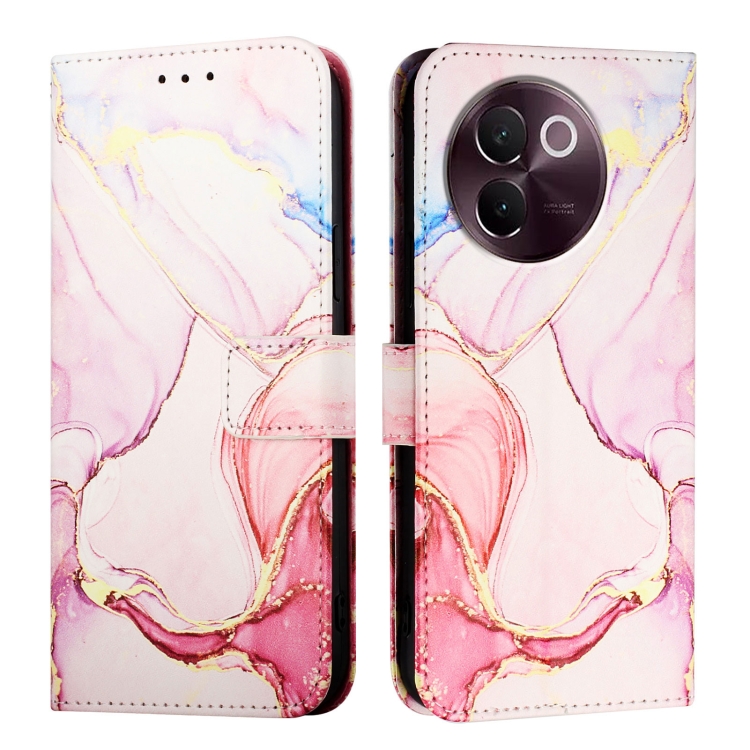 Para Vivo V30E 5G Global Pt003 Funda para Teléfono de Cuero con Tapa con Patrón de Mármol (Oro Rosa)