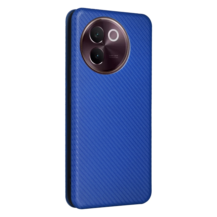 Para Vivo V30E Funda de Cuero con Tapa con Textura de Fibra de Carbono (Azul)