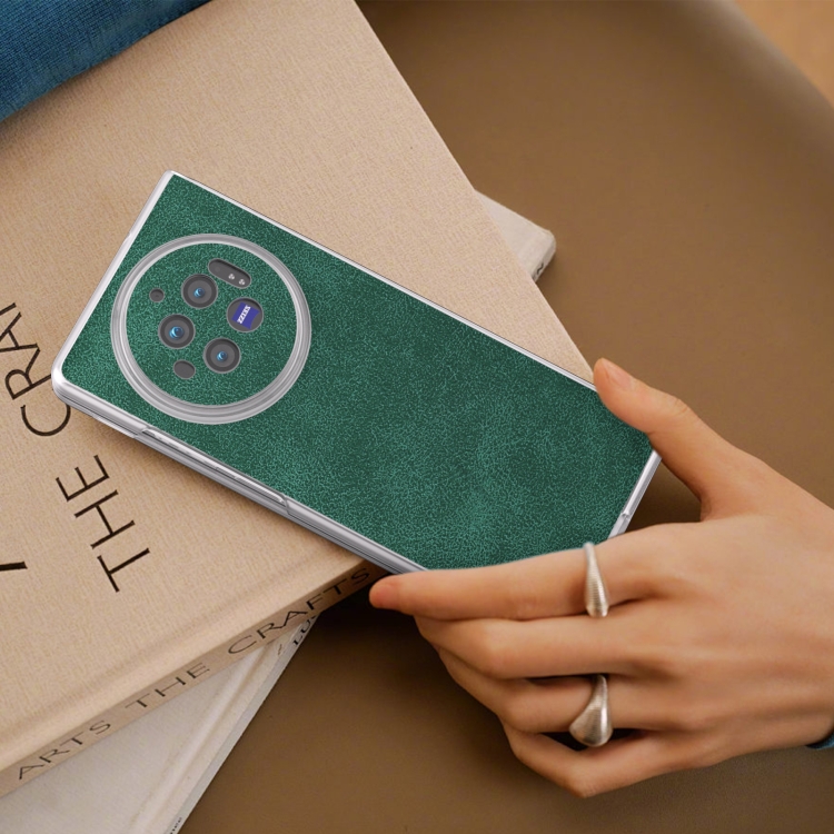 Para Vivo X Fold3 Funda para Teléfono con Borde Transparente Esmerilado de Cuero Pu (Verde)