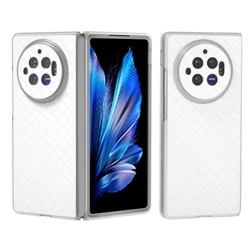 Para Vivo X Fold3 Funda para Teléfono de Pu con Marco Translúcido Esmerilado con Textura Tejida (Blanco)