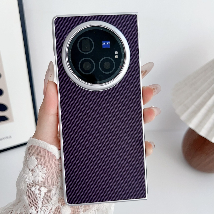 Para Vivo X Fold3 Pro Kevlar Funda para Teléfono Ultrafina a Prueba de Golpes de Fibra de Carbono (Púrpura)