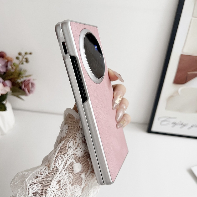 Para Vivo X Fold3 Skin Feel Textura de Cuero Pintura Nacarada Funda para Teléfono a Prueba de Golpes (Rosa)