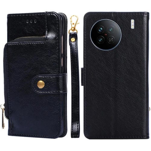 Para Vivo X90 Funda de Cuero con Cremallera para Teléfono (Negro)