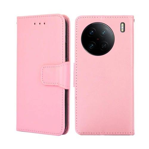 Para Vivo X90 Pro 5G Funda de Cuero con Textura de Cristal para Teléfono (Rosa)