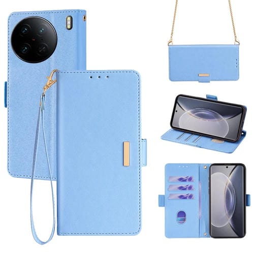 Para Vivo X90 Pro Funda de Cuero para Teléfono con Cadena Cruzada (Azul)