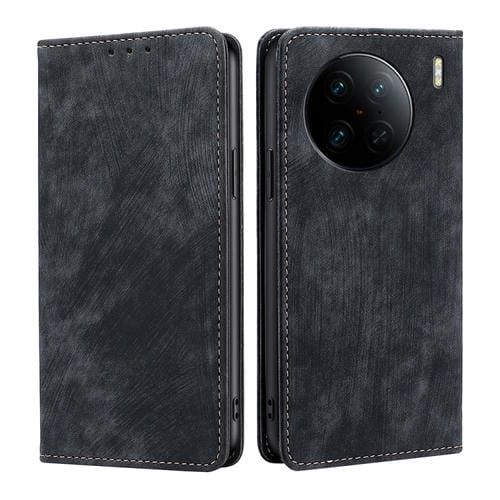 Para Vivo X90 Pro + Rfid Funda de Teléfono de Cuero Magnético con Cepillo Antirrobo (Negro)