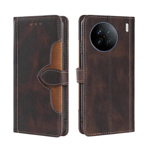 Para Vivo X90 Skin Feel Funda de Cuero con Hebilla Magnética para Teléfono (Marrón)