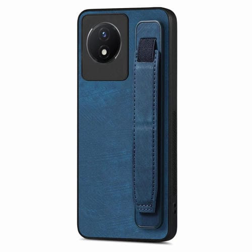 Para Vivo Y02 Retro Muñequera Funda Trasera de Cuero para Teléfono (Azul)