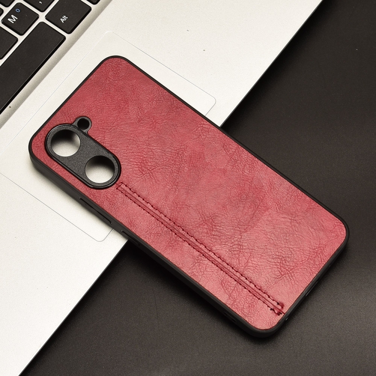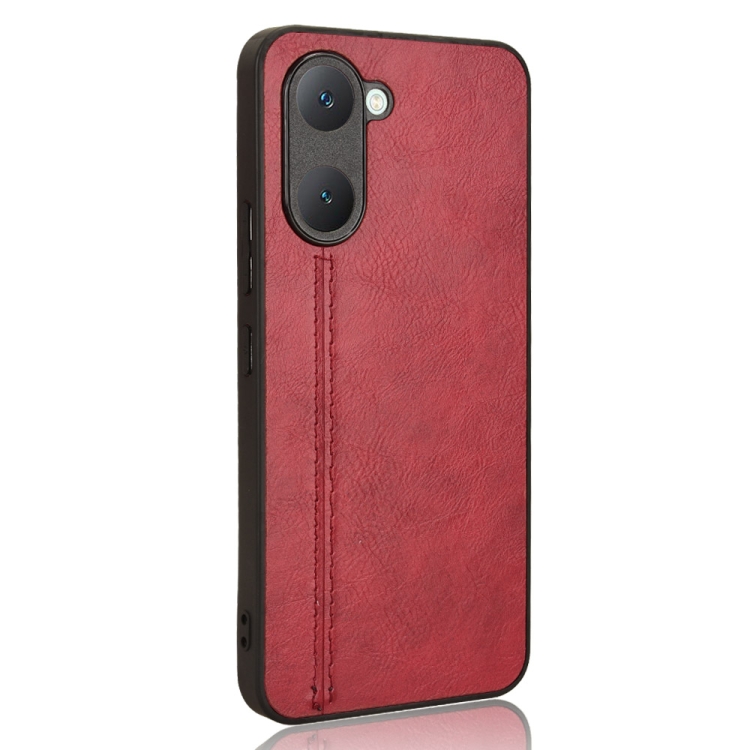Para Vivo Y03 4G Funda para Teléfono con Bolsa para Tarjetas de Costura con Patrón de Vaca (Rojo)