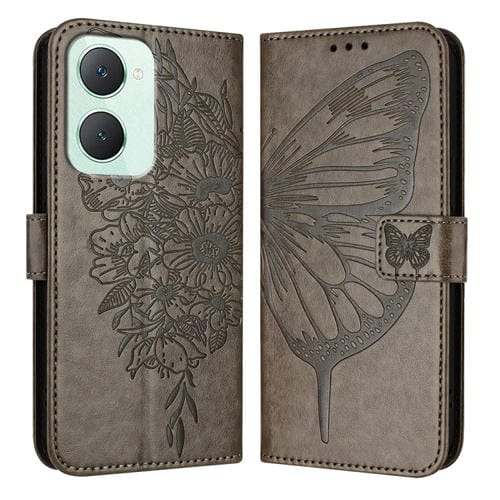 Para Vivo Y03 4G Funda para Teléfono de Cuero con Mariposa En Relieve Global (Gris)