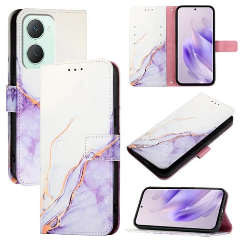 Para Vivo Y03 4G Global Pt003 Funda para Teléfono de Cuero con Tapa con Patrón de Mármol (Blanco y Morado)