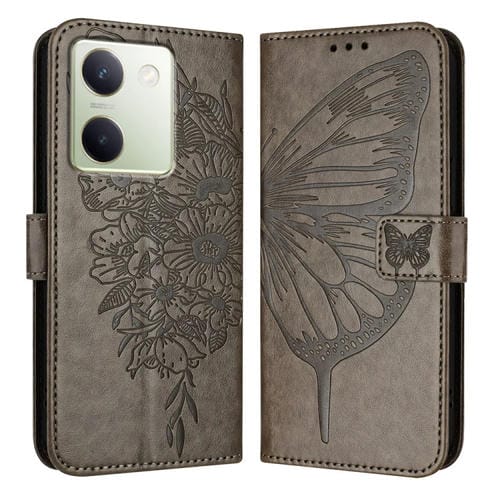 Para Vivo Y100 5G Funda de Cuero para Teléfono con Mariposa En Relieve Global (Gris)