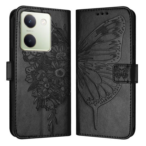 Para Vivo Y100 5G Funda de Cuero para Teléfono con Mariposa En Relieve Global (Negro)