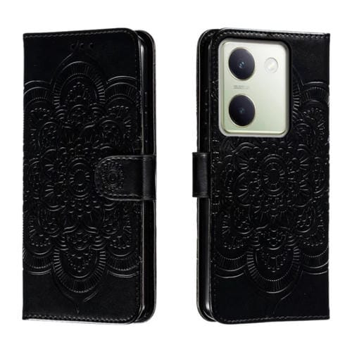 Para Vivo Y100 5G Sun Mandala Funda de Cuero para Teléfono con Patrón En Relieve (Negro)