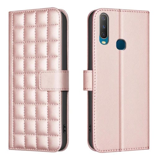 Para Vivo Y11 / Y15 / Y12 / Y17 Funda para Teléfono de Cuero con Textura Cuadrada (Oro Rosa)