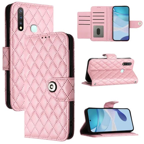 Para Vivo Y19 / U3 / Y5S / Z5I / U20 Funda para Teléfono con Tapa de Cuero con Textura Rómbica y Cordón (Rosa)