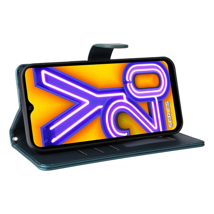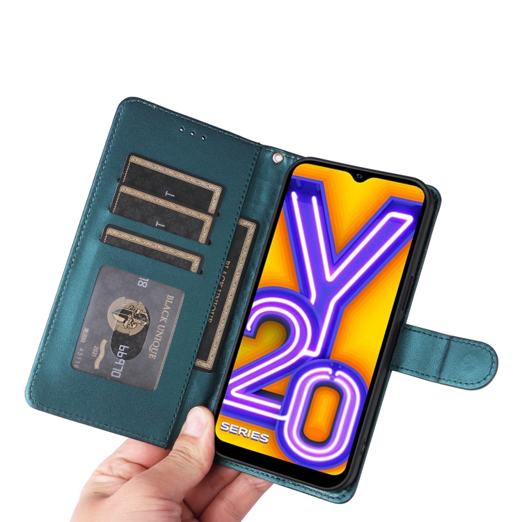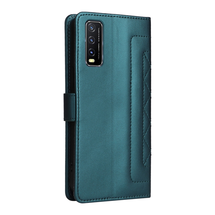 Para Vivo Y20 / Y20I Funda para Teléfono con Tapa de Cuero Diamond Lattice (Verde)