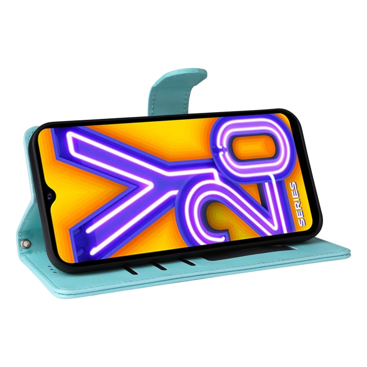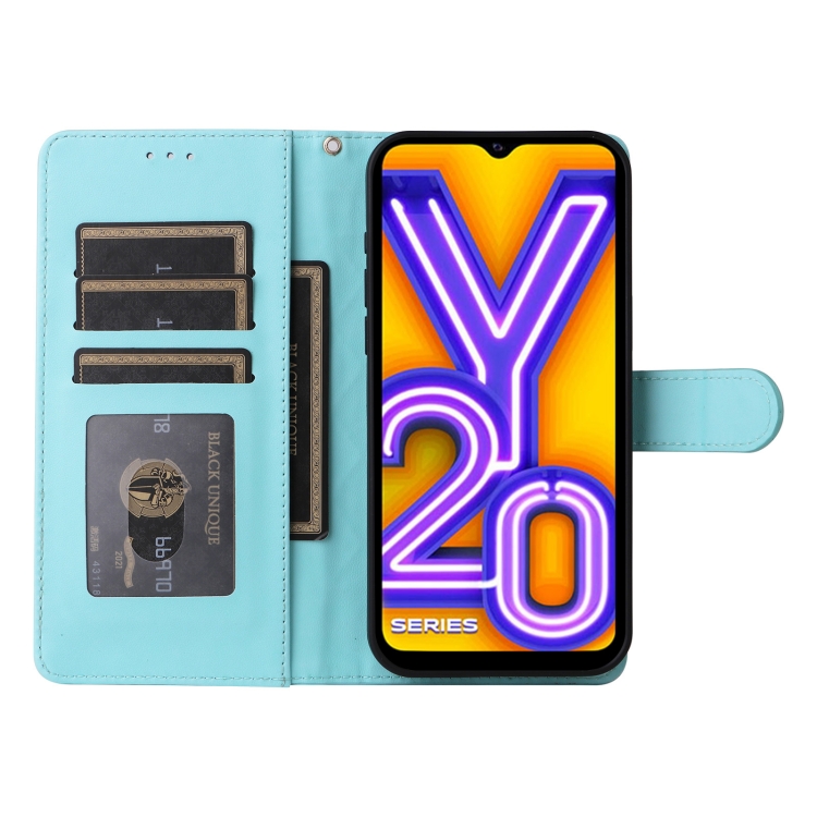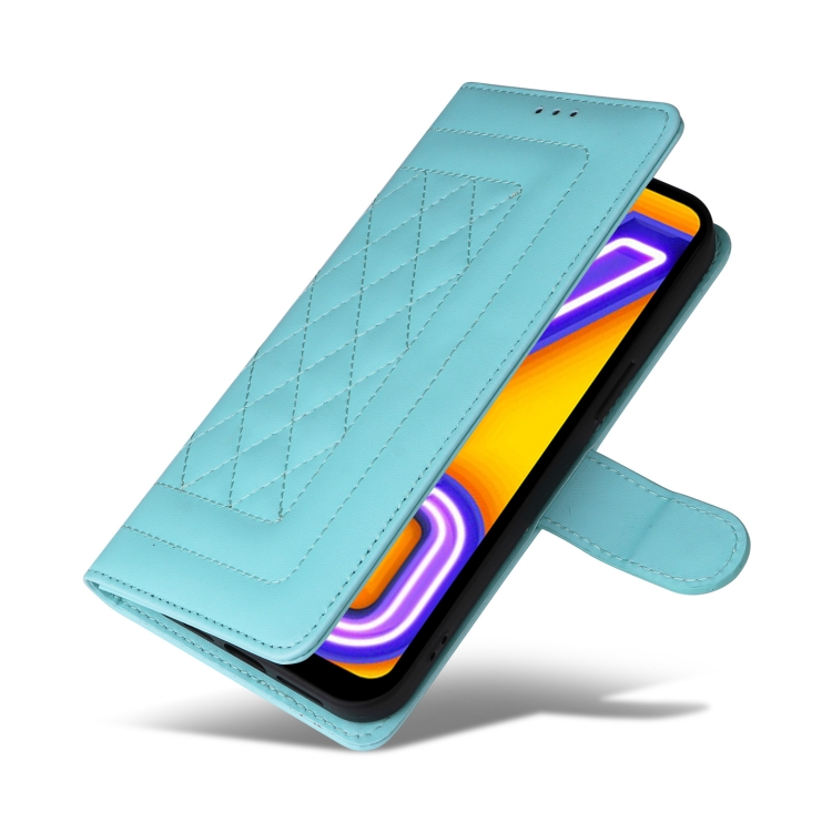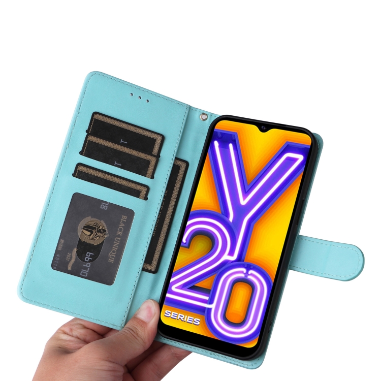 Para Vivo Y20 / Y20I Funda para Teléfono con Tapa de Cuero Diamond Lattice (Verde Menta)