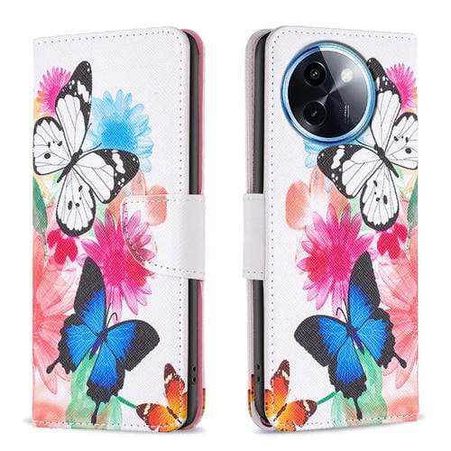 Para Vivo Y200I 5G / Y38 5G Funda de Cuero para Teléfono con Patrón de Dibujo Coloreado (Mariposas)