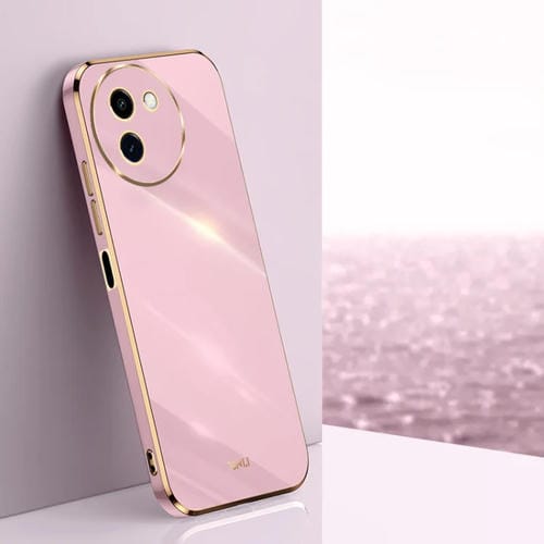 Para Vivo Y200I Xinli Caja de Teléfono de TPU con Borde Dorado y Revestimiento Recto 6D (Púrpura Cereza)