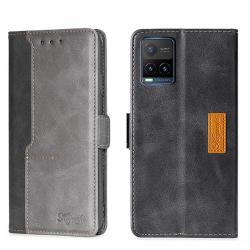 Para Vivo Y21/Y21S/Y33S Color de Contraste Colo de Cuero de Hebilla de Hebilla (Negro + Gris)
