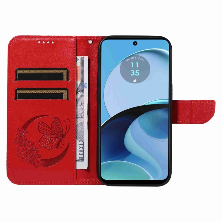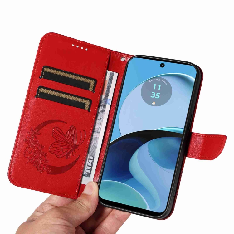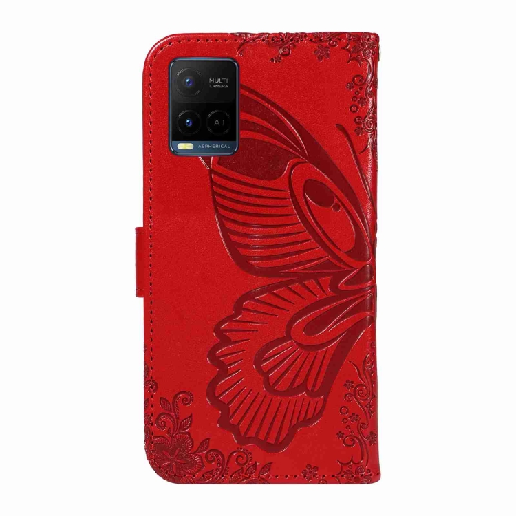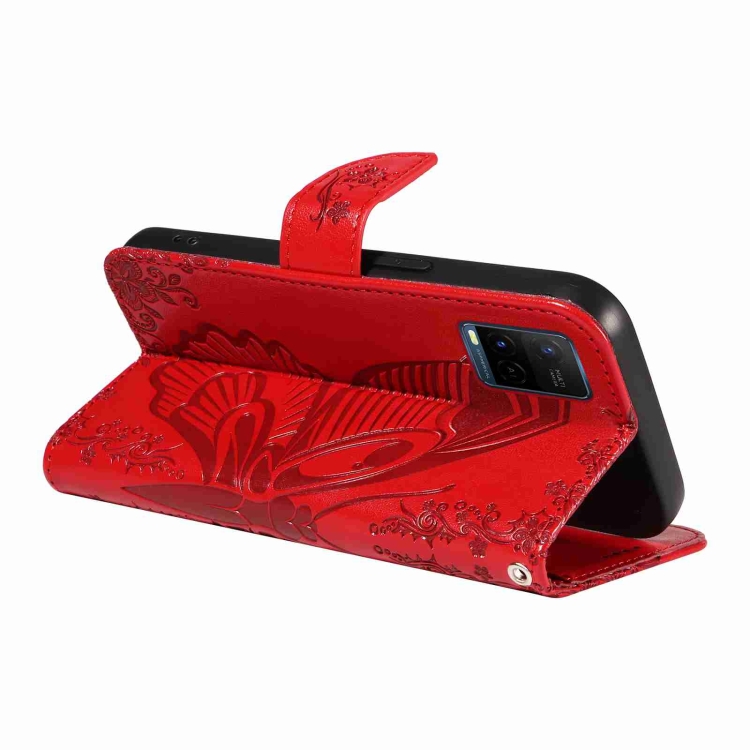 Para Vivo Y21 / Y21S / Y33S Funda para Teléfono de Cuero con Relieve de Mariposa y Cola de Golondrina (Rojo)