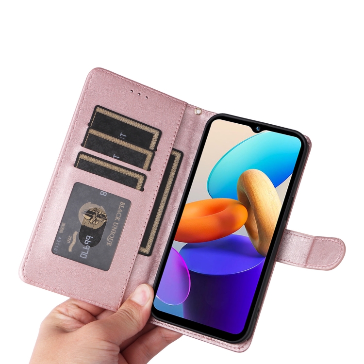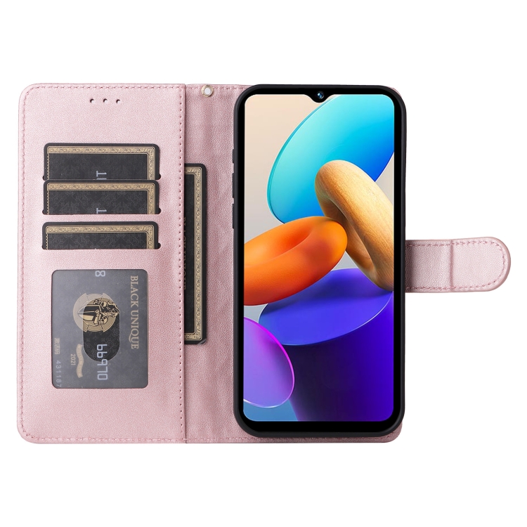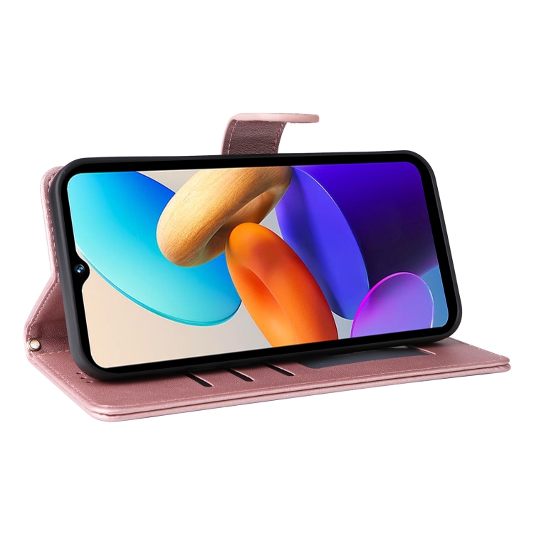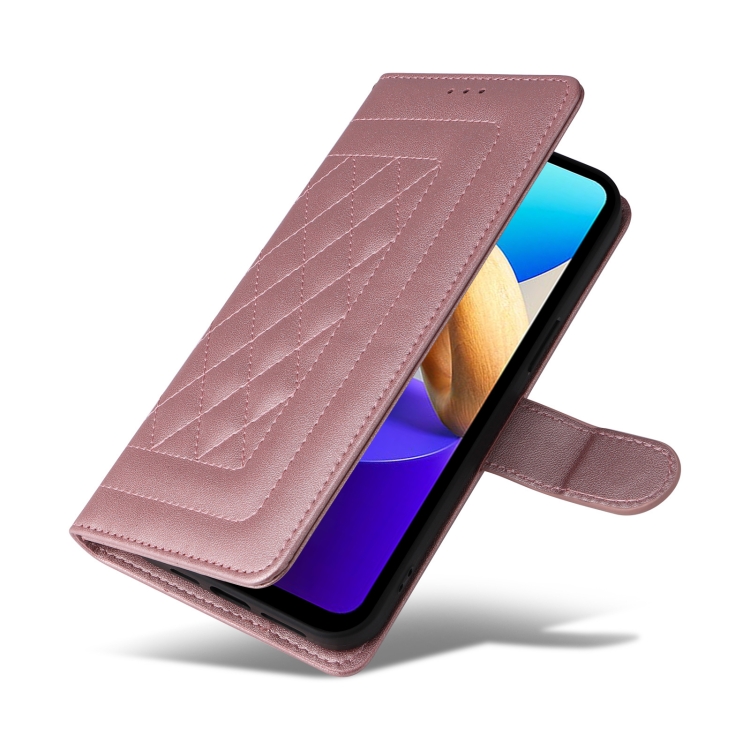 Para Vivo Y22S / Y35 Funda para Teléfono con Tapa de Cuero con Entramado de Diamantes (Oro Rosa)
