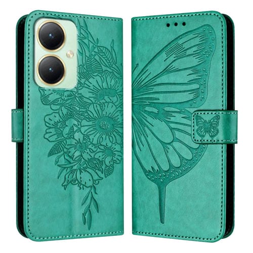 Para Vivo Y27 4G Funda para Teléfono de Cuero con Mariposa En Relieve Global (Verde)
