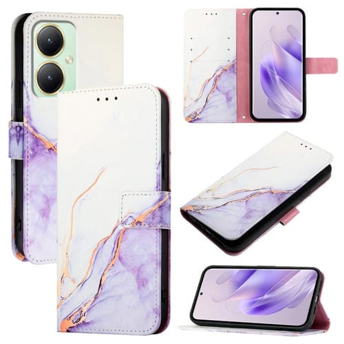 Para Vivo Y27 4G Global Pt003 Funda para Teléfono de Cuero con Tapa con Patrón de Mármol (Blanco y Morado)