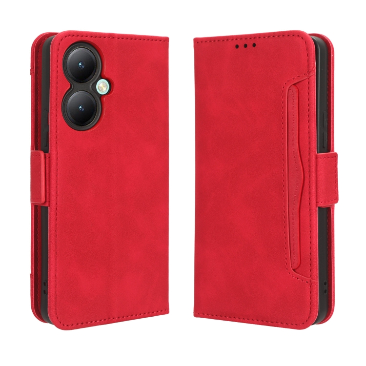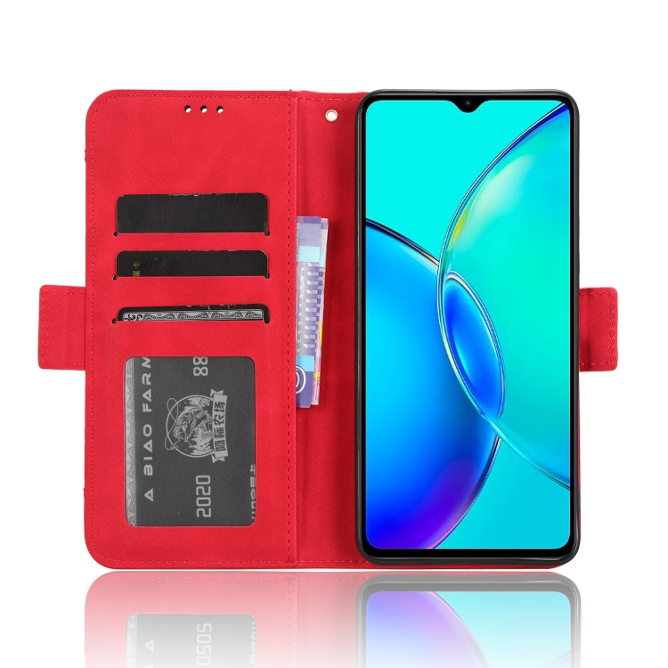 Para Vivo Y35 + 5G Skin Feel Becerro Textura Ranuras para Tarjetas Funda de Cuero para Teléfono (Rojo)