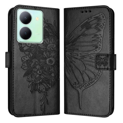 Para Vivo Y36 4G / Y36 5G Global / Y36 4G India Funda para Teléfono de Cuero con Mariposa En Relieve (Negro)