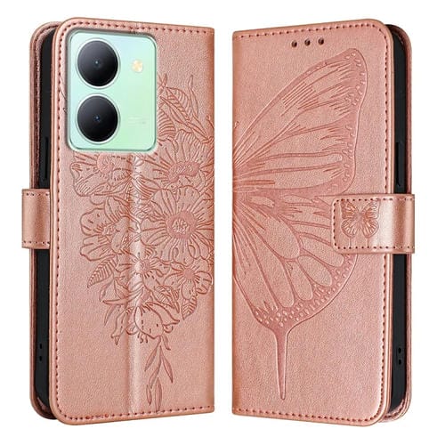 Para Vivo Y36 4G / Y36 5G Global / Y36 4G India Funda para Teléfono de Cuero con Mariposa En Relieve (Oro Rosa)