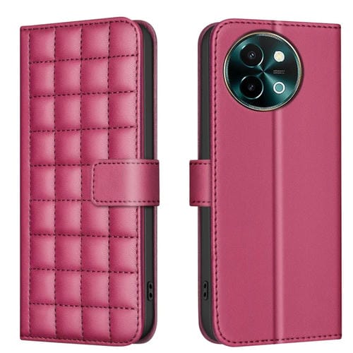 Para Vivo Y38 5G / Y200I 5G Funda de Cuero para Teléfono con Textura Cuadrada (Rojo)