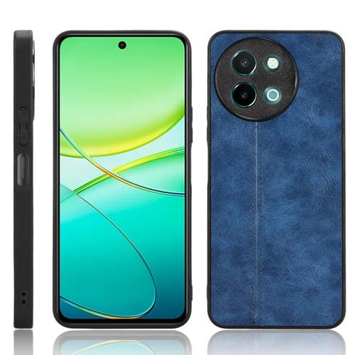 Para Vivo Y38 / Y200I Funda para Teléfono con Contraportada de Costura con Patrón de Vaca (Azul)