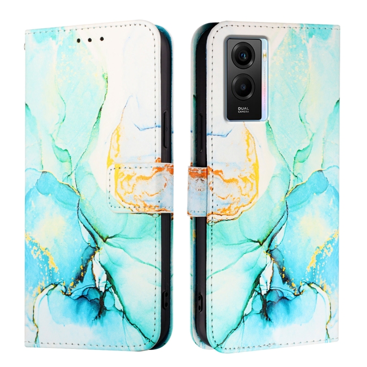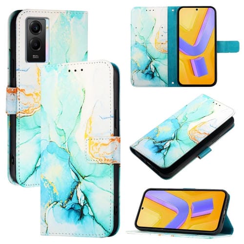 Para Vivo Y55S 5G 2023 / Y55 5G / Y75 5G Pt003 Funda para Teléfono de Cuero con Tapa con Patrón de Mármol (Verde)