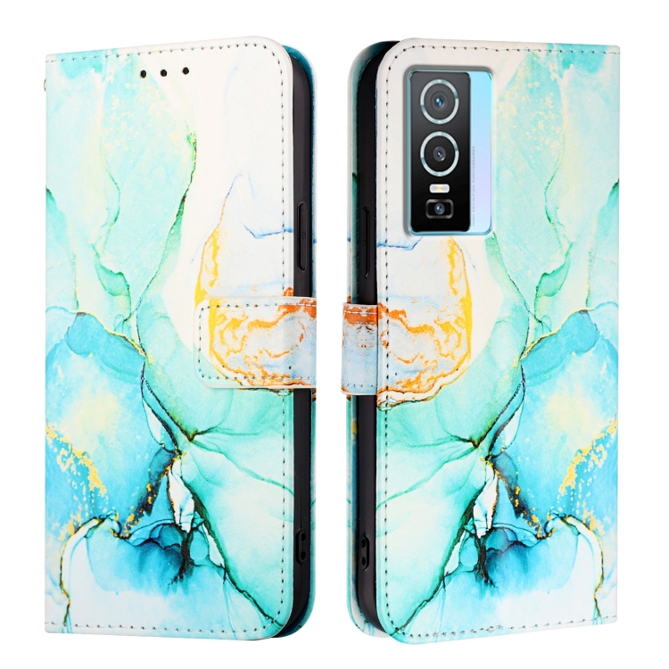 Para Vivo Y76 5G Pt003 Funda para Teléfono de Cuero con Tapa con Patrón de Mármol (Verde)
