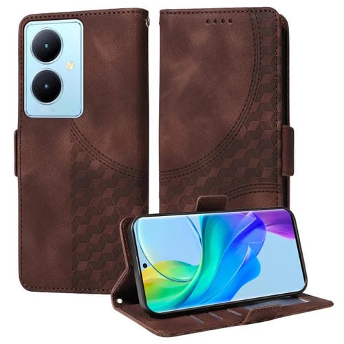 Para Vivo Y78 5G Global / V29 Lite Funda para Teléfono de Cuero Estrellado con Rombos En Relieve (Marrón)
