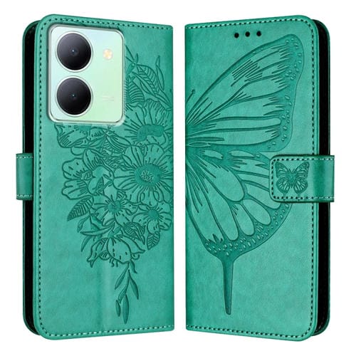 Para Vivo Y78 5G/Y78 + 5G Global/V29 Lite Funda para Teléfono de Cuero con Mariposa En Relieve (Verde)