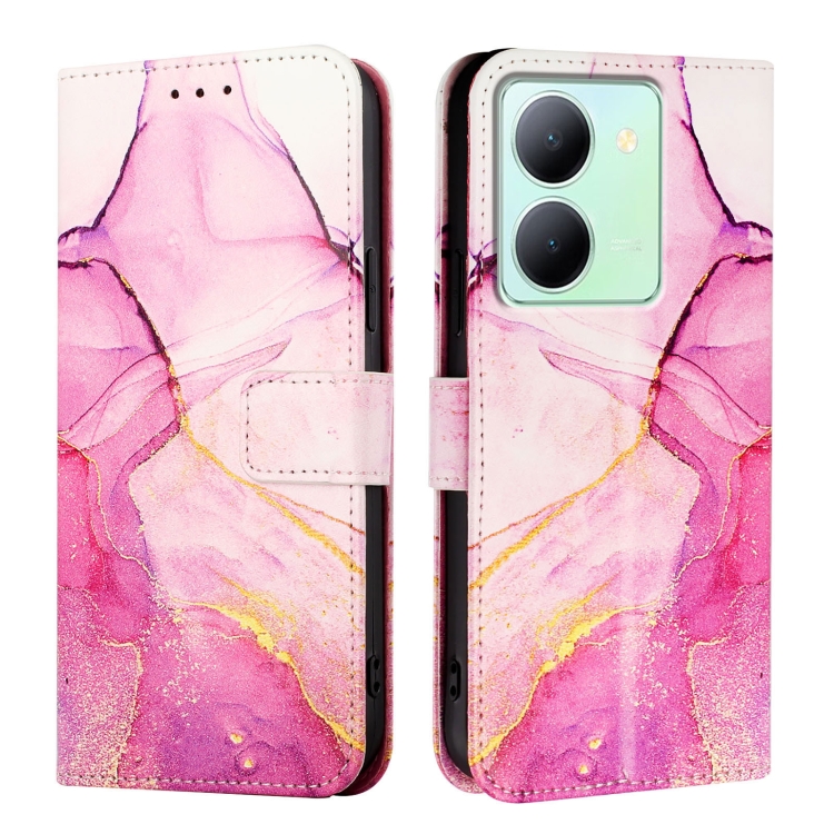 Para Vivo Y78 + / Y78 5G Global / V29 Lite Pt003 Funda para Teléfono de Cuero con Tapa con Patrón de Mármol (Rosa, Morado y Dorado)