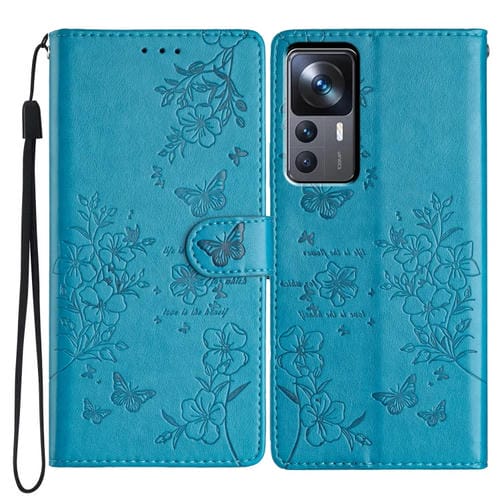 Para Xiaomi 12T / 12T Pro Funda de Cuero para Teléfono con Mariposas y Flores (Azul)