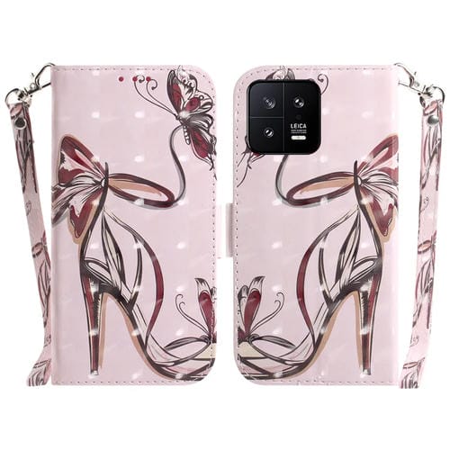 Para Xiaomi 13 5G Estuche para Teléfono de Cuero con Tapa Horizontal de Color 3D (Tacón Alto de Mariposa)