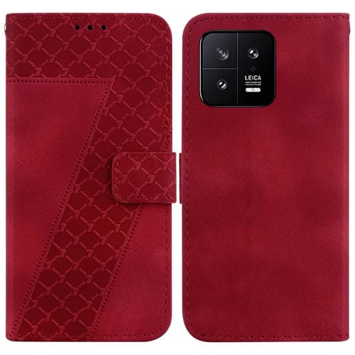 Para Xiaomi 13 5G Funda de Teléfono de Cuero En Relieve En Forma de 7 (Rojo)