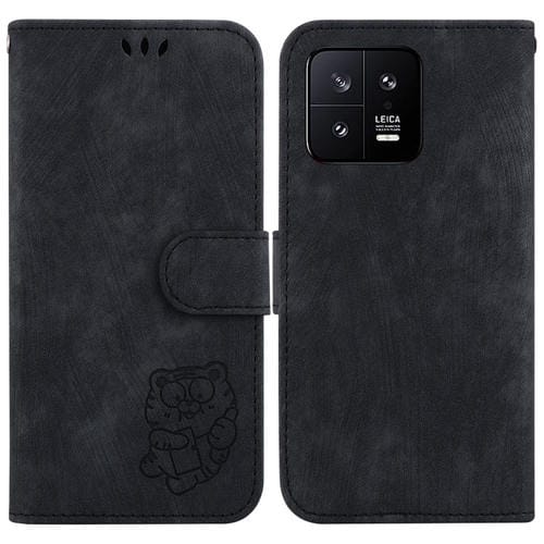 Para Xiaomi 13 5G Little Tiger Funda de Cuero para Teléfono En Relieve (Negro)