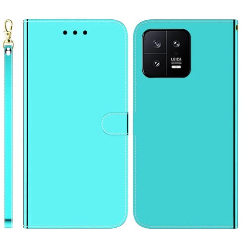 Para Xiaomi 13 5G Superficie de Espejo Imitada Funda de Cuero con Tapa Horizontal para Teléfono (Verde Menta)