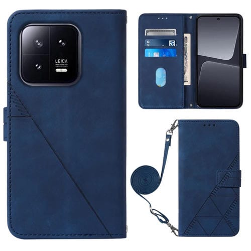 Para Xiaomi 13 Crossbody 3D Funda de Cuero con Tapa En Relieve para Teléfono (Azul)