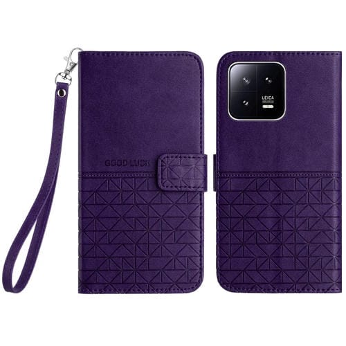 Para Xiaomi 13 Funda de Cuero con Textura Rómbica y Cordón (Púrpura)