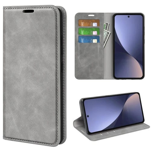 Para Xiaomi 13 Funda de Teléfono de Cuero con Succión Magnética de Piel Retro (Gris)