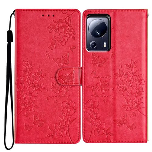 Para Xiaomi 13 Lite Funda de Cuero para Teléfono con Mariposas y Flores (Rojo)