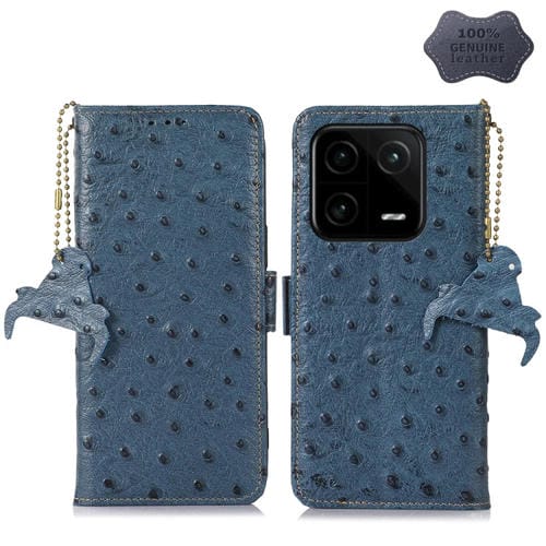 Para Xiaomi 13 Patrón de Avestruz Funda de Teléfono Rfid de Cuero Genuino (Azul)