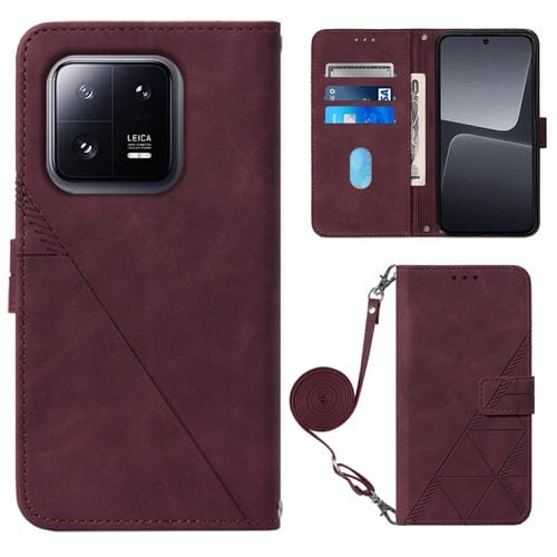 Para Xiaomi 13 Pro Crossbody 3D Funda de Cuero con Tapa En Relieve para Teléfono (Rojo Vino)